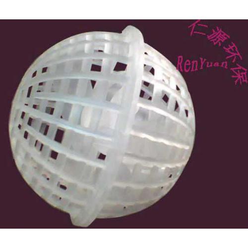 该填料中有稀乙烯材料注造而成,分内外双层球体外部为鱼网状球体,内部为旋转型球体,在使用过程中,微生物挂膜快、生物膜易脱落,抗酸碱、耐老化、不受水流影响,使用寿命长产品耐生物降解,剩余污泥极少,安装方便。