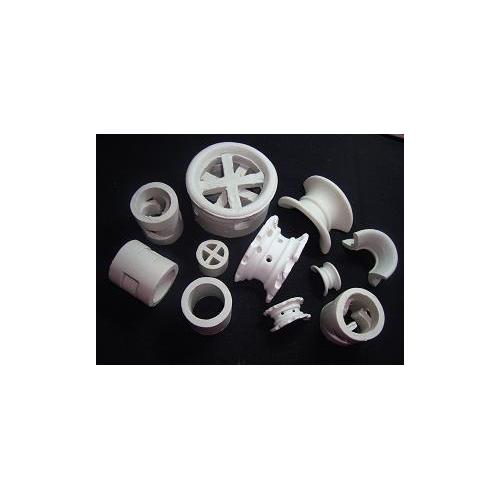 陶瓷十字隔板环是为了增加填料的比表面以强化传质而开发出来的,其形状是在拉西环中增设了十字隔板,由于尺寸较大,仅适用于整齐堆砌,一般只做为散堆填料的塔底支撑分布层用。