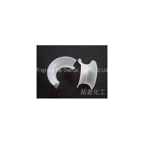 塑料矩鞍环填料类似于马鞍形状,这种填料层中主要为弧形的液体通道,填料层内的空隙较环形填料(尤其较拉西环填料)更加连续,可使气体向上流动时主要沿弧形通道流动。它具有空隙率大,压降和传质单元高度低,泛点高、比重小、汽液接触充分、传质效率高等特点,在各种介质中的使用温度为60-150摄氏度。。