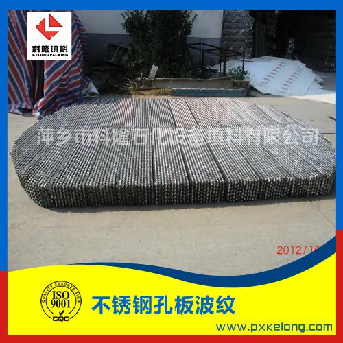 金属孔板波纹填料:是在金属薄板表面冲孔,轧制小纹,大波纹***后组装而成的规整填料,具有阻力小、气液分布均匀、效率高、通量大、放大效应不明显等特点,应用于负压、常压和加压操作。