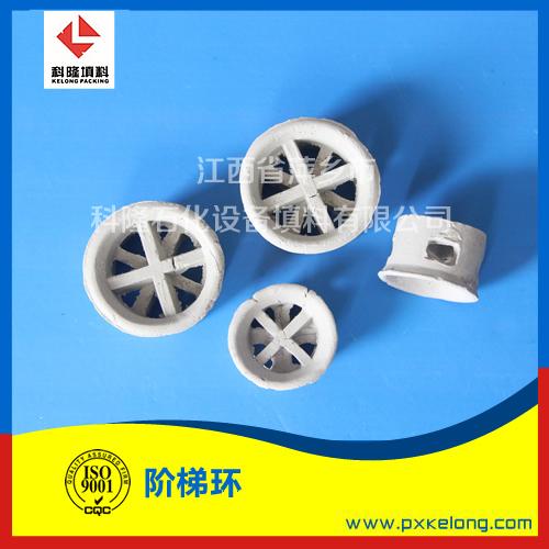 陶瓷阶梯环吸收了陶瓷拉西环的特点,而对鲍尔环的改进,环的高径比为1:2,并在一端增加了锥形翻边,减少了气体通过床层的阻力,并增大了通量,填料强度较高,由于其结构特点,使气液分布均匀,增加了气液接触面积而提高了传质效率。
