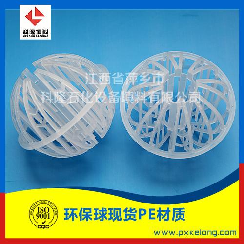 DN50塑料环保球产品概述:环保球采用聚丙乙烯塑料制成球状,在球中部沿整个周长有一道加固环环的上下各有十二片球瓣,沿中心轴呈放射形布置,适用于二氯化碳脱气塔,接触反应塔等装置。