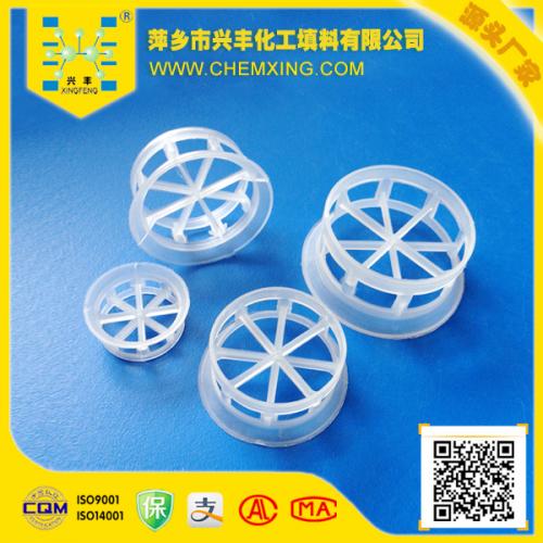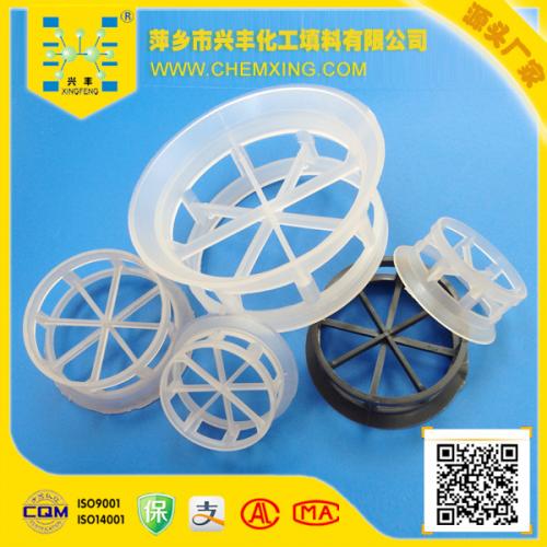 阶梯环填料由于侧端增加了翻边,不但可以增加填料环的机械强度,而且由于破坏了填料结构的对称性,因而增加了填料投放时的定向几率。又由于翻边的影响,使得填料在堆积时填料环隙之间的接触由此线性接触为主变为以点接触为主。这样,不但增加了填料颗粒之间的空隙,减少了气体穿过填料层的阻力,而且这些接触点还可以为液体沿填料表面流动的汇聚分散点,从而促进了液膜的表面更新,有利于填料传质效率的提高.