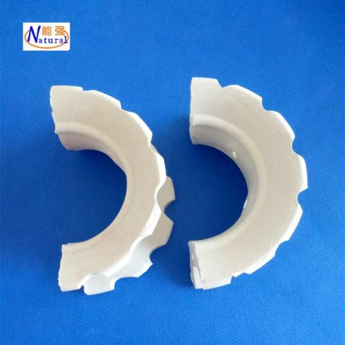 异鞍环陶瓷填料是在矩鞍环填料的基础上加以改进的新型填料,将矩鞍填料的平滑弧形侧面改为锯齿形或纹纹凸起的侧面。这样在填料床层内,增加了填料间接触的空隙,使之更有利于气体和液体在填料层中的流动和分散,具有压降低,传质效率高等特点,广泛应用于硫酸生产的干燥塔和吸收塔中。