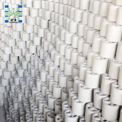 十字隔板环填料是基于增加填料的比表面积,从而强化传质效率而开发出来的。其形状是在拉西环中间增设了十字隔板。一般来讲,这种填料由于尺寸较大,仅适用于整体堆砌,目前一般只作为乱堆填料的塔底支撑分布层用.