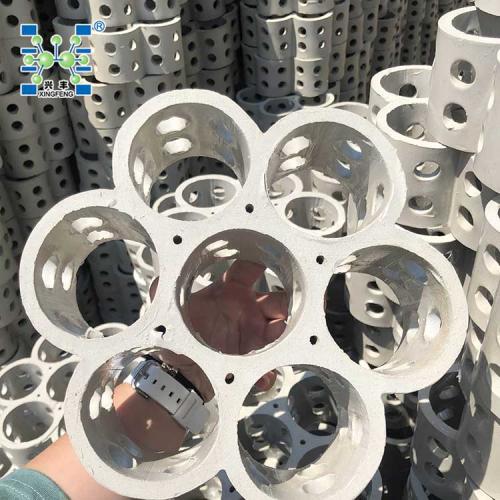 陶瓷连环规整填料也叫多孔陶瓷连环填料,连环填料系列产品的开发,主要是取替塔内老式不理想的填充料,解决阻力大、寿命短、易腐蚀、破碎等问题。连环填料具有构造简单、处理能力大、操作弹性大、传质效率高和压降适中、装卸方便等优点。