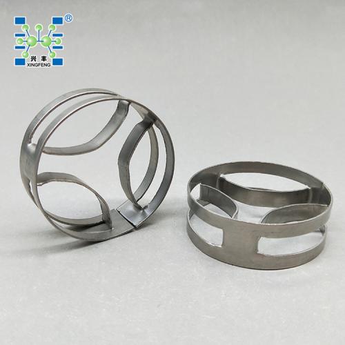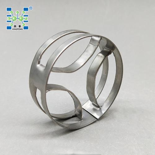 金属扁环填料,属于短开孔环型填料,简称SMR(Super Mini Ring ),此填料用于低界面张力体系的液液萃取过程,轴向混合小,处理能力大,其传质效率可提高20%以上;用于中等界面张力体系的液液萃取过程时,其笔负荷可达50~60m 3/(m2.h);此种填料也可适用于气液传质过程。