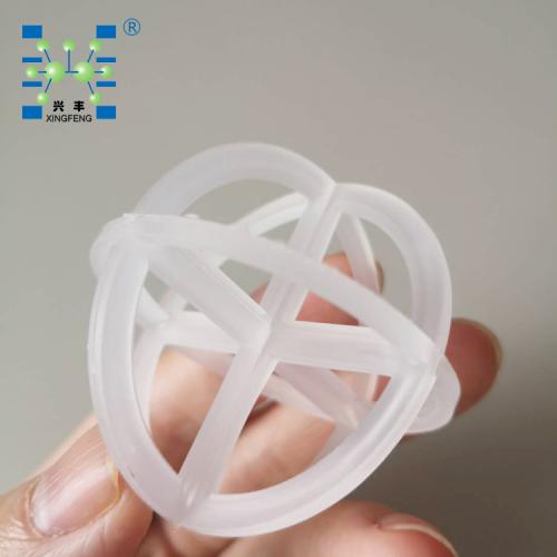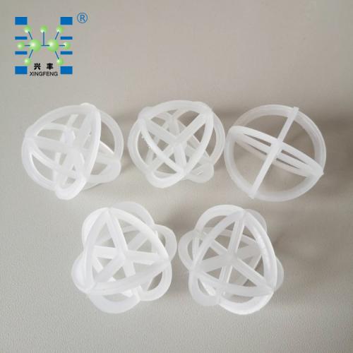 塑料十字球形环填料是研制开发的聚丙烯(PP)、增强聚丙烯(RPP)、聚氯乙烯(PVC)、氯化聚氯乙烯(CPVC)等材质的塑料填料,与传统的散堆填料相比,它可以和规整填料相媲美,具有更大的空隙率和比表面积,阻力更小、传质效率更高,且比重更轻等特点。可以用于化工、化肥、煤气、制药、制氧、冶金等行业中。