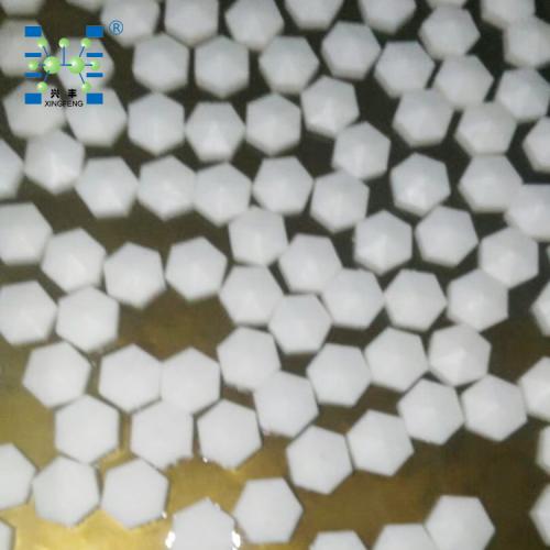 液面覆盖球填料主要用于液面上层履盖作用。如:用于酸碱贮罐中,可以防止酸碱气体外溢,挥发、减少酸碱气体对外环境的污染,和节约酸碱材料的作用;用于除盐水中,使空气和水隔离可以减少空气中的CO2,O2及灰尘杂质等对除盐水的污染,保证水质量。适用于各种卧式酸贮槽、水处理中的凝储水箱、除盐水箱,大程度的减少酸雾、空气中的二氧化碳和氧对水的污染,达到保护水质、节约能源,净化环境的作用。