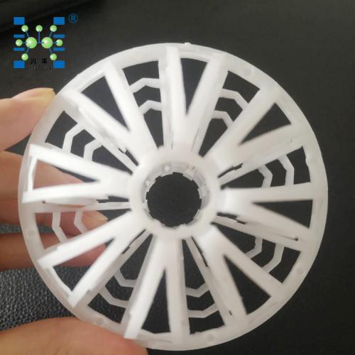 哈凯登(Hackectten)填料又名Tti-Pac,国内多用于空气净化装置里面,所以又俗称过滤球或者环保过滤球。它是1978年由德国的 R.A.Jaeger(现在的美国Jaeger Products Inc)研发的产品。哈凯登填料是由许多枝条的隔栅组成空心的球形填料,这个结构有利于填料表面的润湿与液膜的更新,由于隔栅在塔内堆积的孔隙均匀,有利于气液的分布和减小气流通过床体的阻力,特别适合气体吸收、尾气净化等装置,并可在低的液体负荷下操作。