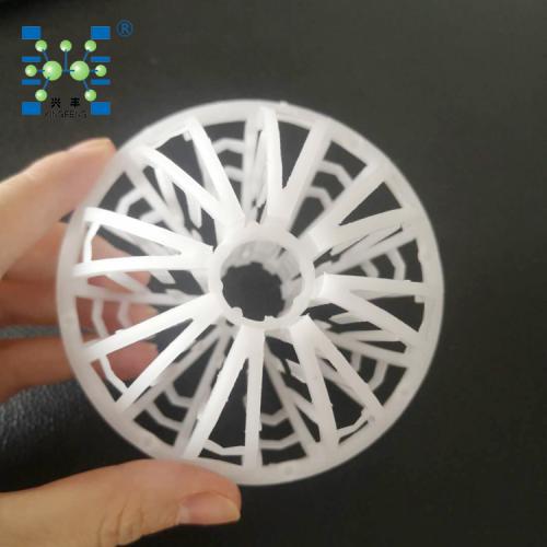 塑料环保球采用聚丙乙烯塑料制成球状,在球中部沿整个周长有一道加固环环的上下各有十二片球瓣,沿中心轴呈放射形布置,适用于二氯化碳脱气塔,接触反应塔等装置。环保球耐腐蚀性能好、空隙大、通量大、阻力小、能耗低、且重量轻、易装卸、可重复使用、操作费用低等特点。环保球(TRI)填料的特点是在填料有本体没有任何一块大的表面,而是由许多格栅状的枝条棒联接组合成为一个空心球体,此种填料不但空隙率高而且各个方面的自由截面积很大,向异性很小。由于许多格栅状的枝条棒联接组合而成,又为下流的液体提供许多流动的汇聚分散边缘,不但使填料表面能很好的润湿,而且可使液体形成许多微滴,可促进液体的表面更新,有利于气液两相间的传质。可广泛用于气体吸收,净化还可用于除雾器。