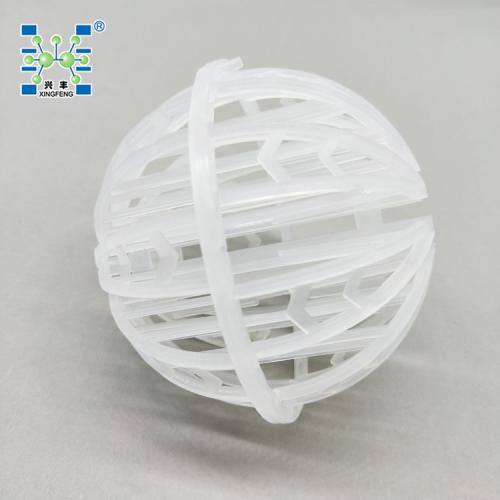 塑料环保球采用聚丙乙烯塑料制成球状,在球中部沿整个周长有一道加固环环的上下各有十二片球瓣,沿中心轴呈放射形布置,适用于二氯化碳脱气塔,接触反应塔等装置。环保球耐腐蚀性能好、空隙大、通量大、阻力小、能耗低、且重量轻、易装卸、可重复使用、操作费用低等特点。环保球(TRI)填料的特点是在填料有本体没有任何一块大的表面,而是由许多格栅状的枝条棒联接组合成为一个空心球体,此种填料不但空隙率高而且各个方面的自由截面积很大,向异性很小。由于许多格栅状的枝条棒联接组合而成,又为下流的液体提供许多流动的汇聚分散边缘,不但使填料表面能很好的润湿,而且可使液体形成许多微滴,可促进液体的表面更新,有利于气液两相间的传质。可广泛用于气体吸收,净化还可用于除雾器。