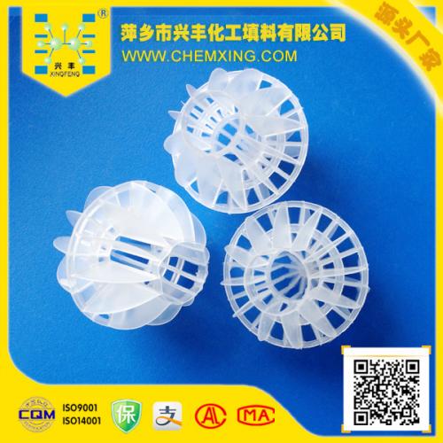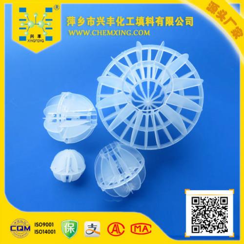 聚丙烯多面空心球是由二个半球合成一个球形,每个半球由若干个半扇形叶片组成,由两个半球的扇形叶片又相互错开。