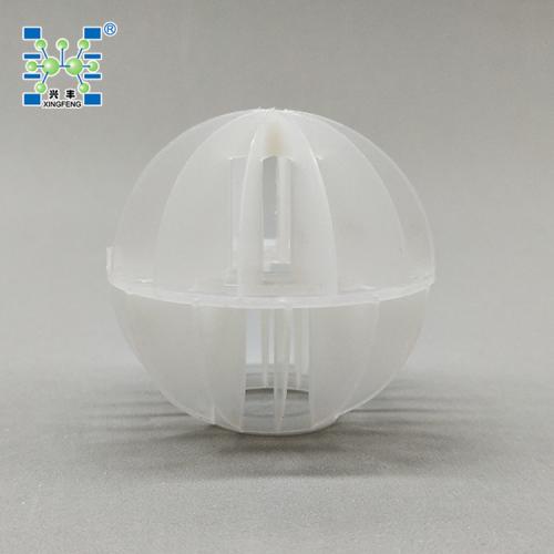 聚丙烯多面空心球是由二个半球合成一个球形,每个半球由若干个半扇形叶片组成,由两个半球的扇形叶片又相互错开。