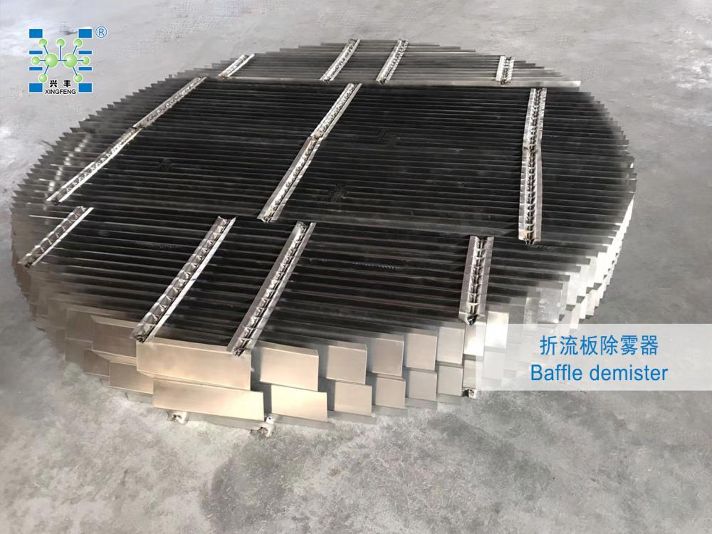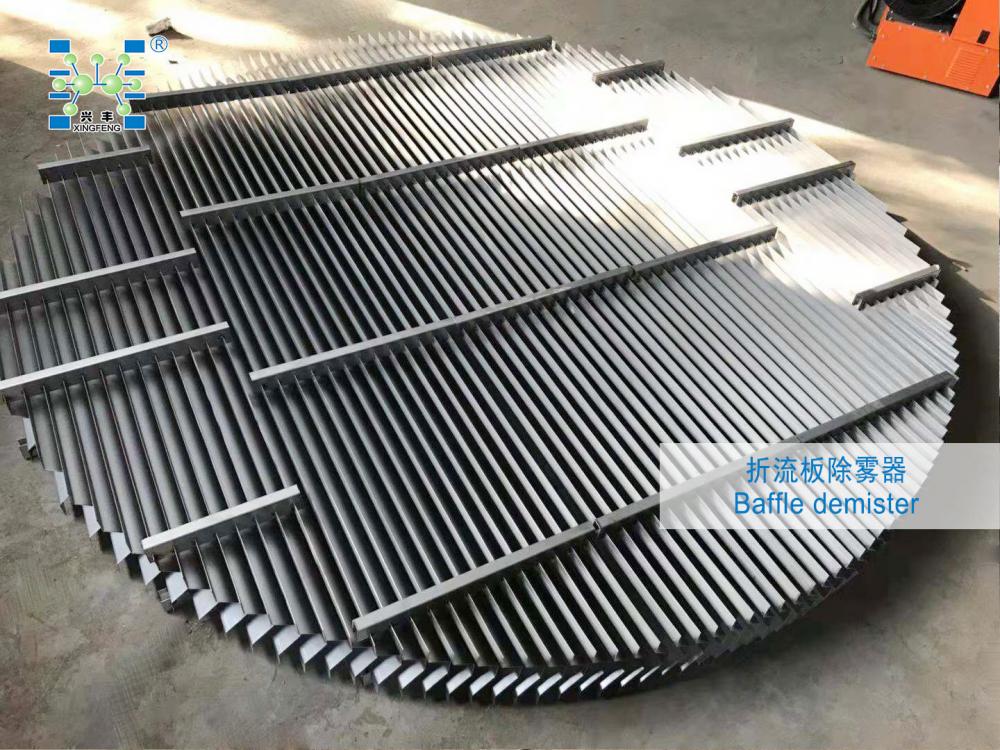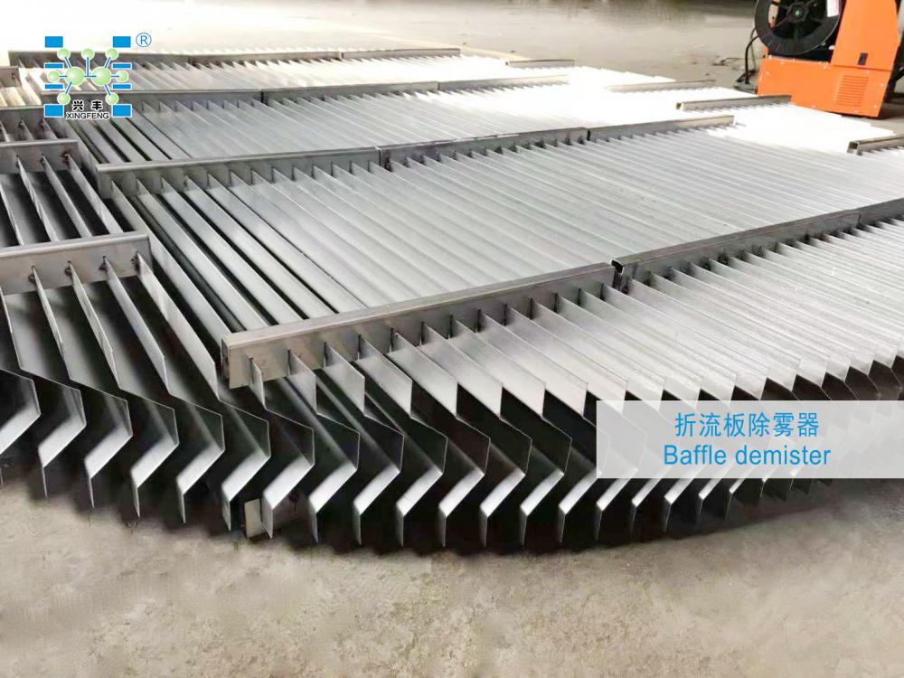2.除雾器的特性参数 (1)除雾器临界分离粒径dcr 波形板除雾器利用液滴的惯性力进行分离,在一定的气流流速下,粒径大的液滴惯性力大,易于分离,当液滴粒径小到一定程度时,除雾器对液滴失去了分离能力。除雾器临界分离粒径是指除雾器在一定气流流速下能被完全分离的***小液滴粒径。除雾器临界分离粒径越小,表示除雾器除雾能力越强。 应用于世法脱硫系统屋脊式除雾器,其除雾器临界分离粒径在20-30μm。 (2)除雾器临界烟气流速 在一定烟速范围内,除雾器对液滴分离能力随烟气流速增大而提高,但当烟气流速超过一定流速后除雾能力下降,这一临界烟气流速称为除雾器临界烟气流速。临界点的出现,是由于产生了雾沫的二次夹带所致,即分离下来的雾沫,再次被气流带走,其原因大致是:①撞在叶片上的液滴由于自身动量过大而破裂、飞溅;②气流冲刷叶片表面上的液膜,将其卷起、带走。因此,为达到一定的除雾效果,必须控制流速在一合适范围:***高速度不能超过临界气速;***低速度要确保能达到所要求的***低除雾效率。