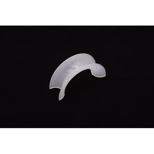 塑料矩鞍环填料的形状介于环形与鞍形之间,因而兼有两者之优点,这种结构有利于液体分布和增加了气体通道,比 鲍尔环 阻力小、通量大、效率高。填料强度和刚性较好,是目前应用较广的一种散装填料。矩鞍填料将弧鞍填料两端的弧形面改为矩形面,且两面大小不等,即成为矩鞍填料。矩鞍填料堆积时不会套叠,使床层孔隙率均匀,改善了液体分布性能。矩鞍环液体散布性能与拉西环或弧鞍形环相比,其液泛点高,压降和传质单元高度较低。塑料矩鞍环填料具有压降低、通量大、效率高、负荷弹性大、抗污性好。在各种介质中的使用温度为60-150摄氏度,目前塑料矩鞍环填料主要应用于氯碱、石油、 化工、环保等行业的填料塔中。