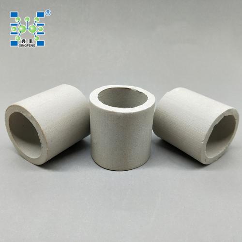 陶瓷拉西环是开发的一种散堆填料。它的形状简单,其高度与直径尺寸相等。大尺寸的拉西环(100mm以上)一般采用整砌方式规则填充,75mm尺寸以下的拉西环一般采用乱堆方式装填。