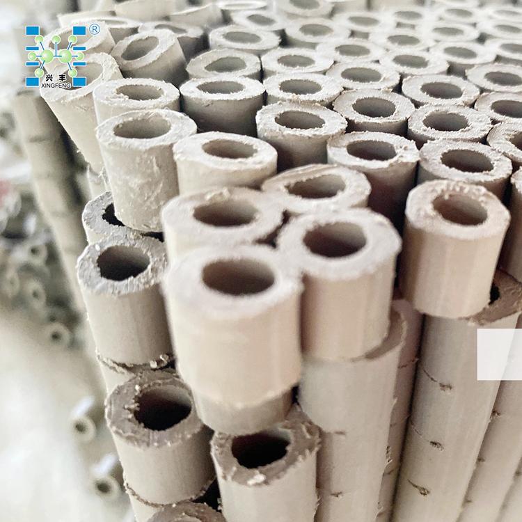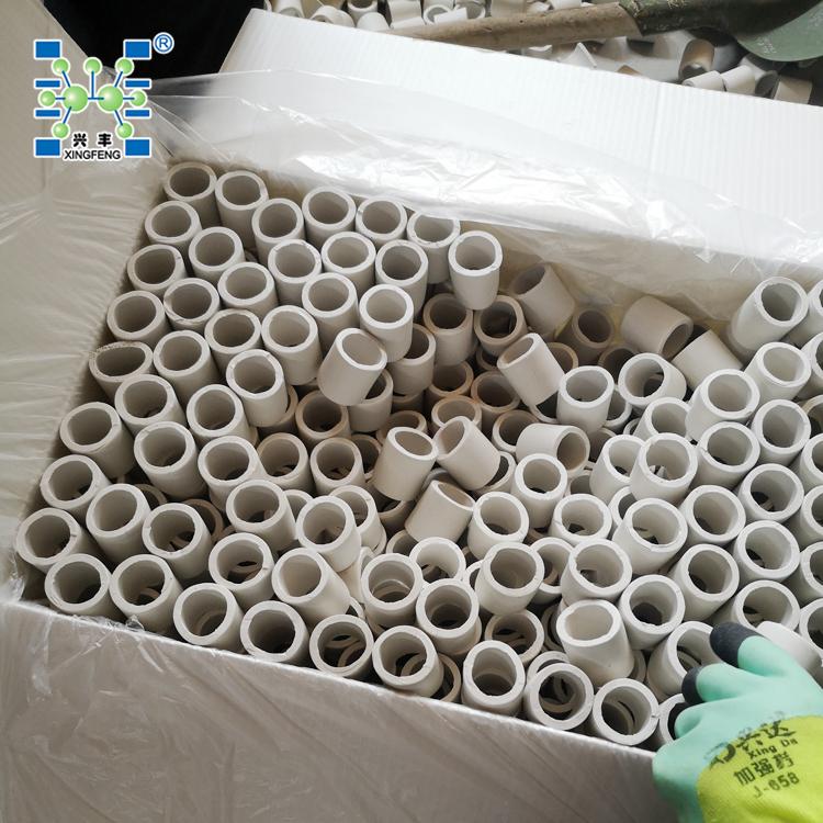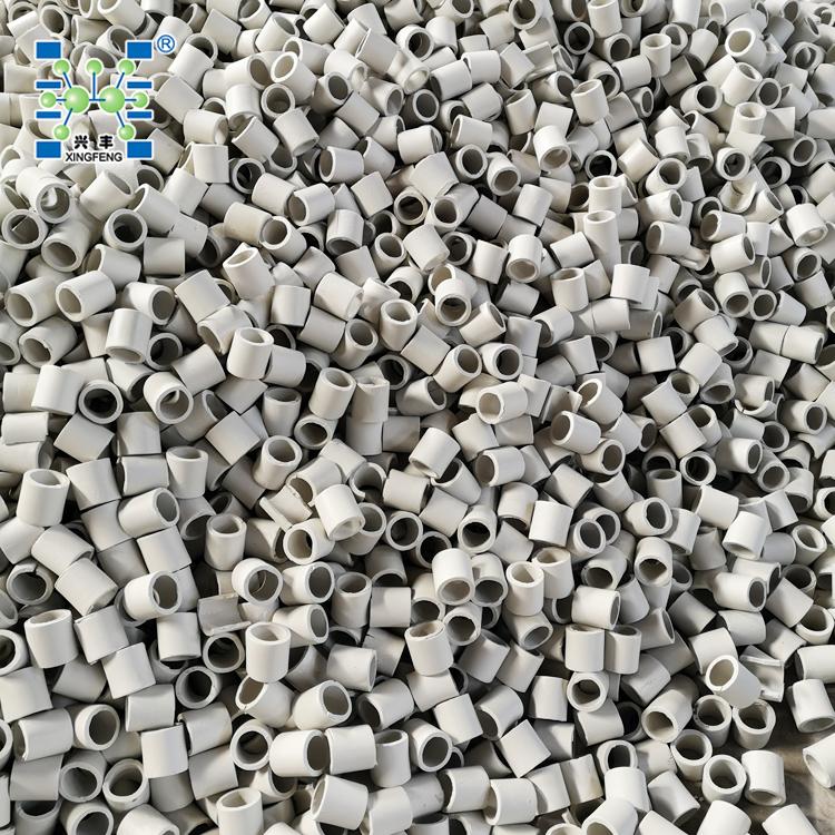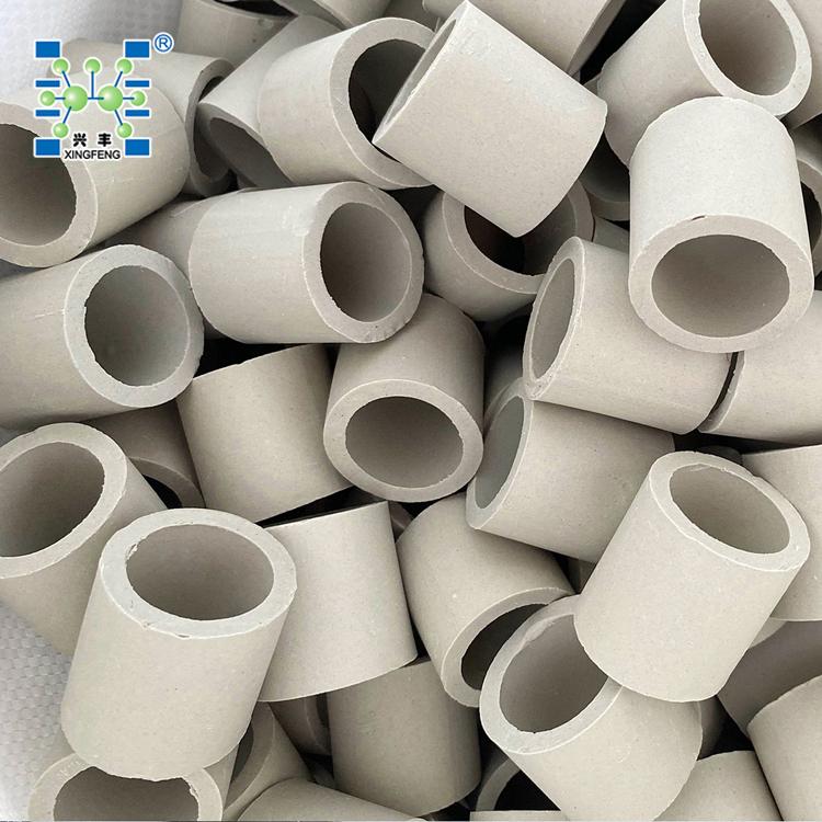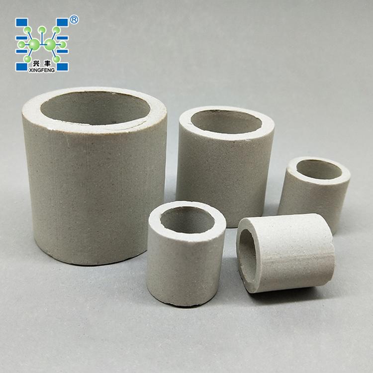 陶瓷拉西环是***早开发的一种散堆填料。它的形状简单,其高度与直径尺寸相等。大尺寸的拉西环(100mm以上)一般采用整砌方式规则填充,75mm尺寸以下的拉西环一般采用乱堆方式装填。