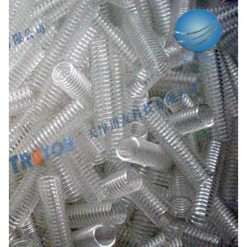 玻璃弹簧填料,主要在精细化工、制药等行业的实验室精馏装置的填料塔中用。具有耐腐蚀、过滤效率高的特点。该产品直径、长度可以根据用户要求进行设计制造,常规产品为直径3~8mm、长度6~20mm。玻璃弹簧填料主要用于腐蚀性物料,如有机酸类,有的物系不允许和铁离子接触,玻璃弹簧填料是实验室优先填料。可供有机化工、石油化工、精细化工、生物制药化工等专业的科研、教育、新产品开发方面的研究试验使用。
