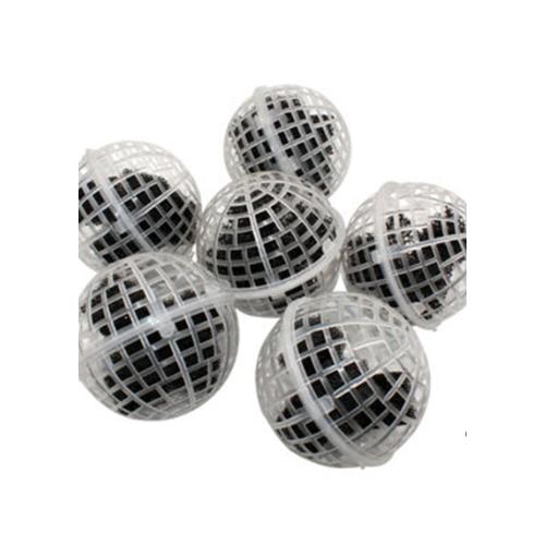 多孔悬浮球填料又称多孔旋转球形悬浮填料,是对国内处理污水、生物膜法处理技术采用的多种填料中开发的新系列产品。在污水的生化处理中具有全立体结构,比表面积大,易挂膜,不堵塞,微生物易生成,易更换,耐酸碱,抗老化,不受水流影响,使用寿命长,剩余污泥少,直接投放,无须固定,安装方便。