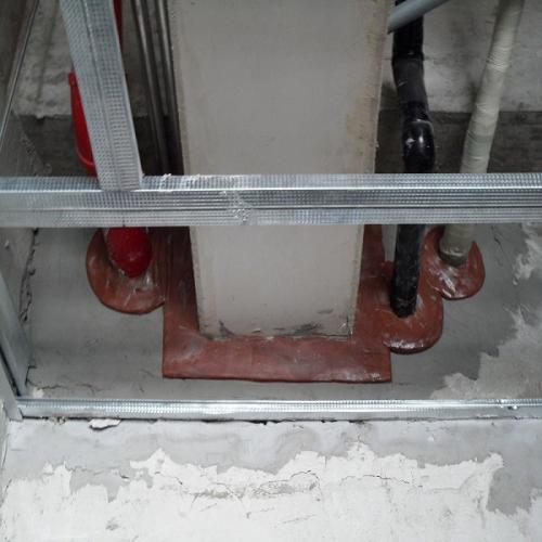 3、 将堵料均匀的铺、嵌、填于孔洞缝隙中,对于较大的孔洞,可先用防火网做骨架以增加强度。